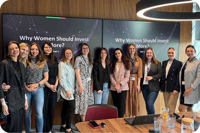 Pripažindami šio skirtumo svarbą, supratome, kad būtina sukurti specialią erdvę, kurioje moterys galėtų mokytis apie investavimą, dalintis savo istorijomis ir viena kitą palaikyti.
